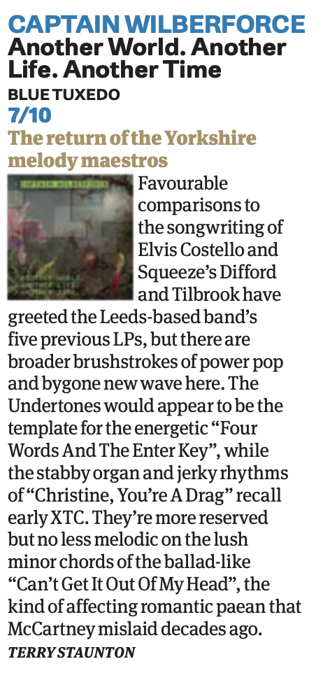 Simon Bristoll's Captain Wilberforce must have been banging his head against the nearest brick wall with all those Neil Finn comparisons. If only 10% of those Finn fans bought his back cat, he would be retiring to Whitby"